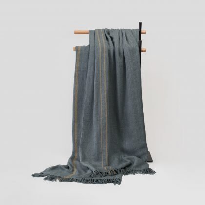 Manta en 100% seda rústica color gris rayas beigeManta en 100% seda rústica color gris rayas beigever producto
