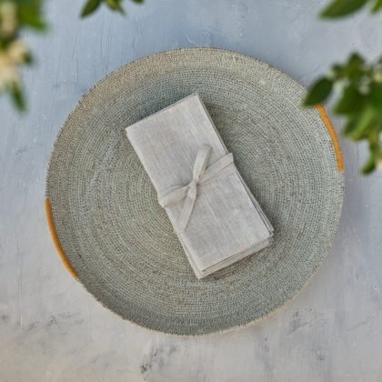 Desde siempre, el lino ha sido una de las fibras preferidas para la confección de textiles de mesa. Siguiendo esta tradición, hemos creado para ti unos preciosos sets de servilletas en 100% lino, confeccionadas con finas terminaciones en tonalidades que evocan el otoño y la primavera. Deja volar tu imaginación y combínalas como más te guste para darle personalidad a tu mesa.