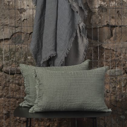 Cojín 100% Lino doble faz con borde desflecado, tamaño 40x55cm color Verde Seco, con rellenoCojín 100% Lino doble faz con borde desflecado, tamaño 40x55cm color Verde Seco, con relleno$71.800ver producto