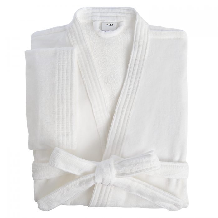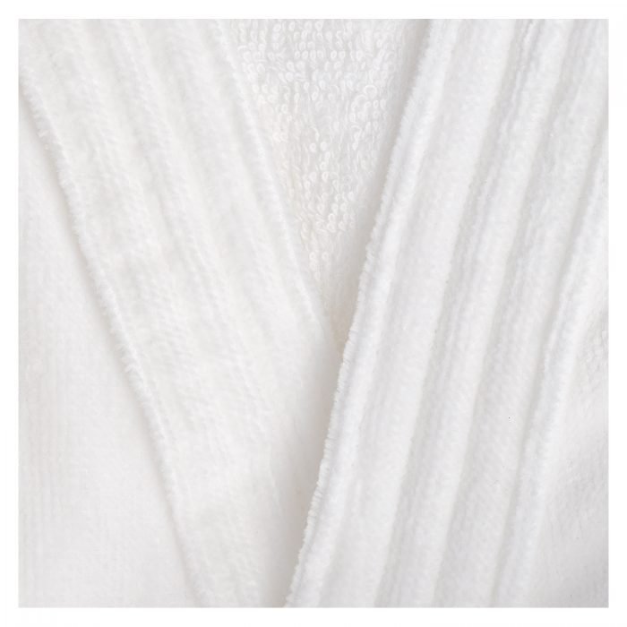 Confortable y suave bata hotelera de toalla, 100% algodón, con bolsillos y cinto con costuras reforzadas, terminación velour. Manga 3/4. Proporcional a cada talla: largo a la rodilla.