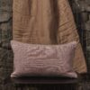 Cojín lino algodón con borde en yute natural, tamaño 40x65cm color rosa pálido, con relleno de pluma