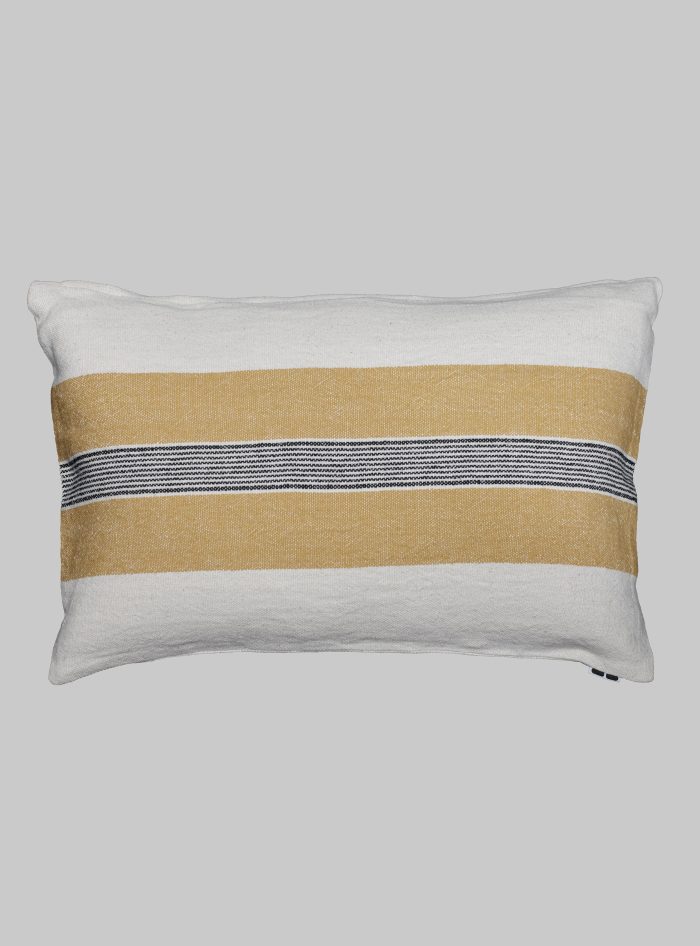 Cojín lino – algodón tamaño 40x60cm, color crudo / mostaza / gris, relleno de pluma.