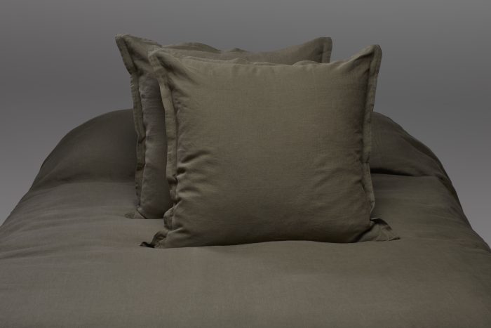 Funda de cojín tamaño 70x70cm, con aleta de 2 cm., 100% Lino color Kaki
