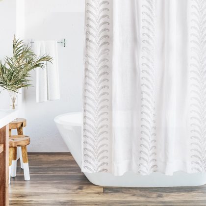 Cortina de baño 100% lino, estampada a mano en tonos grises. Tamaño 180x190cm.Cortina de baño 100% lino, estampada a mano en tonos grises. Tamaño 180x190cm.$74.900ver producto