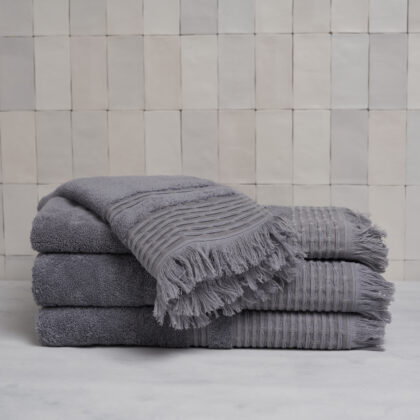 Set de 2 toallas de mano Premium con flecos, 50x80cm, 620gr/m2 color gris.Set de 2 toallas de mano Premium con flecos, 50x80cm, 620gr/m2 color gris.$15.600ver producto